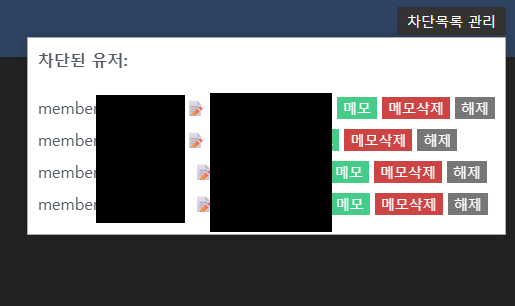 차단한 유저를 해제하거나 메모를 할 수 있습니다.